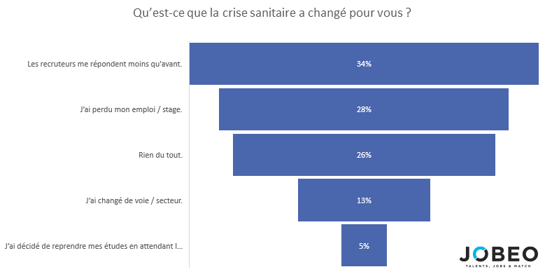 Un tiers des candidats considère que les recruteurs leur répondent moins qu’auparavant et un quart ont subi directement les conséquences de la crise en ayant perdu leur emploi ou leur stage.