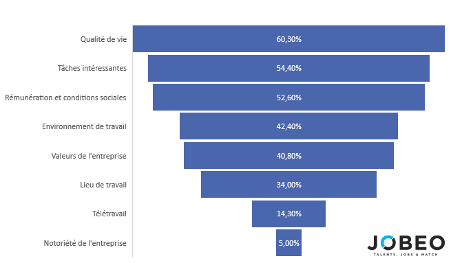 Le télétravail et la notoriété de l’entreprise sont des éléments moins importants à leurs yeux.